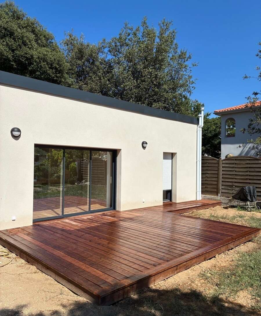 Pour votre terrasse, votre artisan Bertrand MOUSSION et son équipe vous propose différents matériaux (bois : Exotiques, Teck - Douglas, Pin classe 4 - Composite), étudie les contraintes de votre chantier (plots, pilotis, dalle).